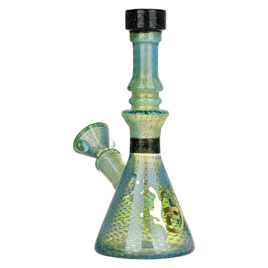 This Heady Beaker Bong from Pulsar is a portable water pipe that comes in three eye-catching colors. It is an excellent choice for smokers who want great function in a compact water pipe. The Heady Beaker Bong is equipped with a built-in downstem and massive funnel bowl for large packs of your herb. At just 7” inches tall, this water pipe provides massive rips and cool, flavorful smoke. Made of premium colored borosilicate glass with unique colors and dichro-striped accents, the Heady Beaker Bong is sure to be the star of your next smoke session.