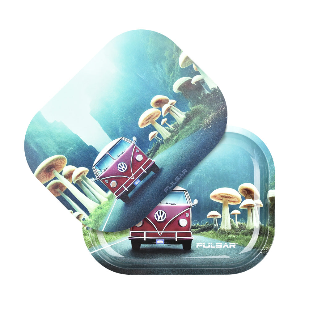 Discover the Pulsar Mini Metal Rolling Tray w/ Lid - Camper Van Shroom Trip