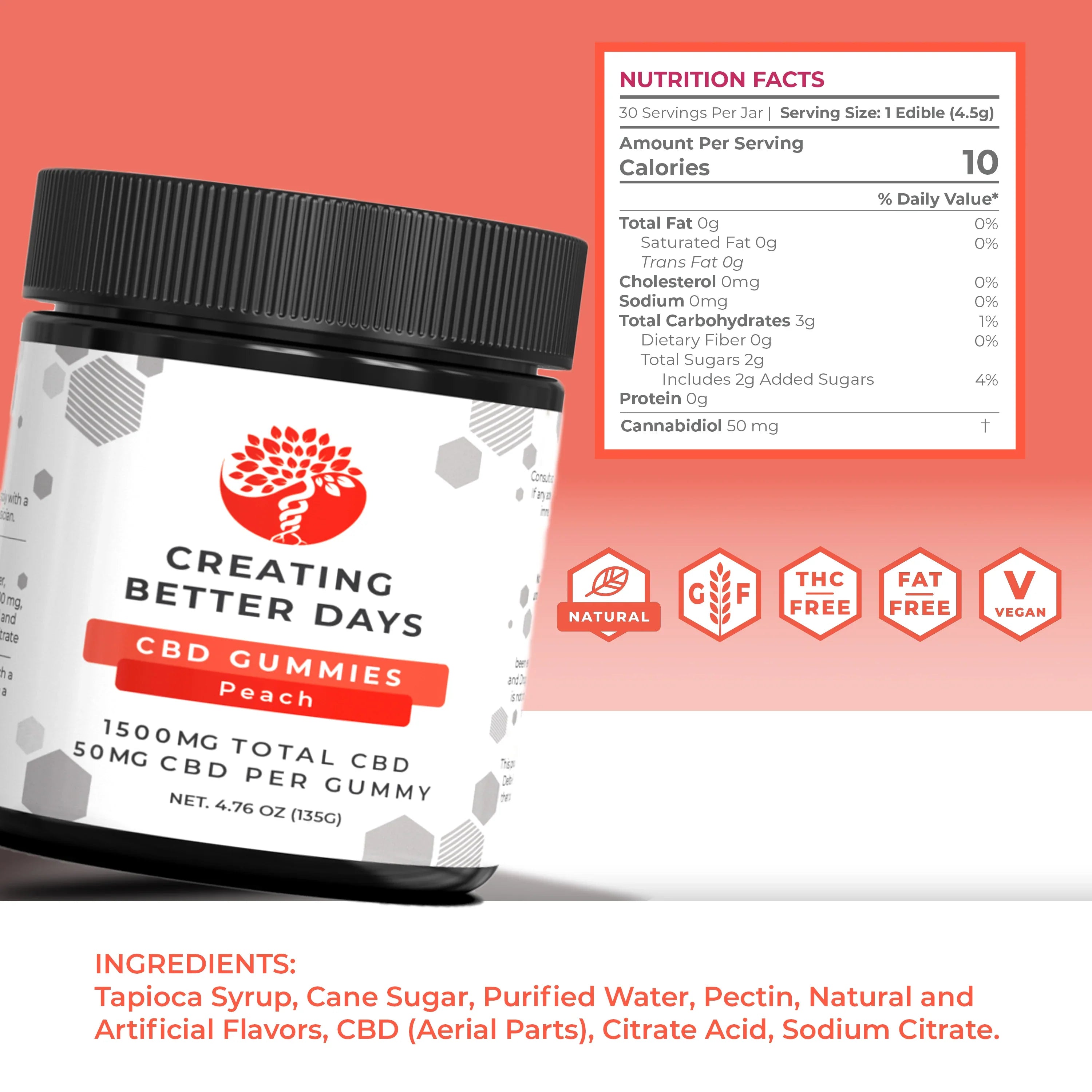 Looking for more quality CBD products? Discover our premium range of CBD Products and pick the perfect CBD gummies that suit your taste. Have questions about our Peach CBD Gummies 1500 MG? Our knowledgeable support team is here to help you. Contact our experts at (1800) 215-0223 or email us at info@creatingbetterdays.com.
